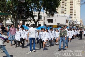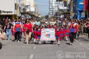 Con gran cantidad de público ubicado en calle Córdoba, se cumplió ayer el tradicional desfile por los 347 años de Bell Ville, destacándose el aplauso espontáneo al paso de los representantes de más de un centenar de instituciones que mostraron con orgullo lo que hacen por la ciudad desde la educación, cultura, deporte, solidaridad, religión, economía y seguridad, entre otros aspectos.