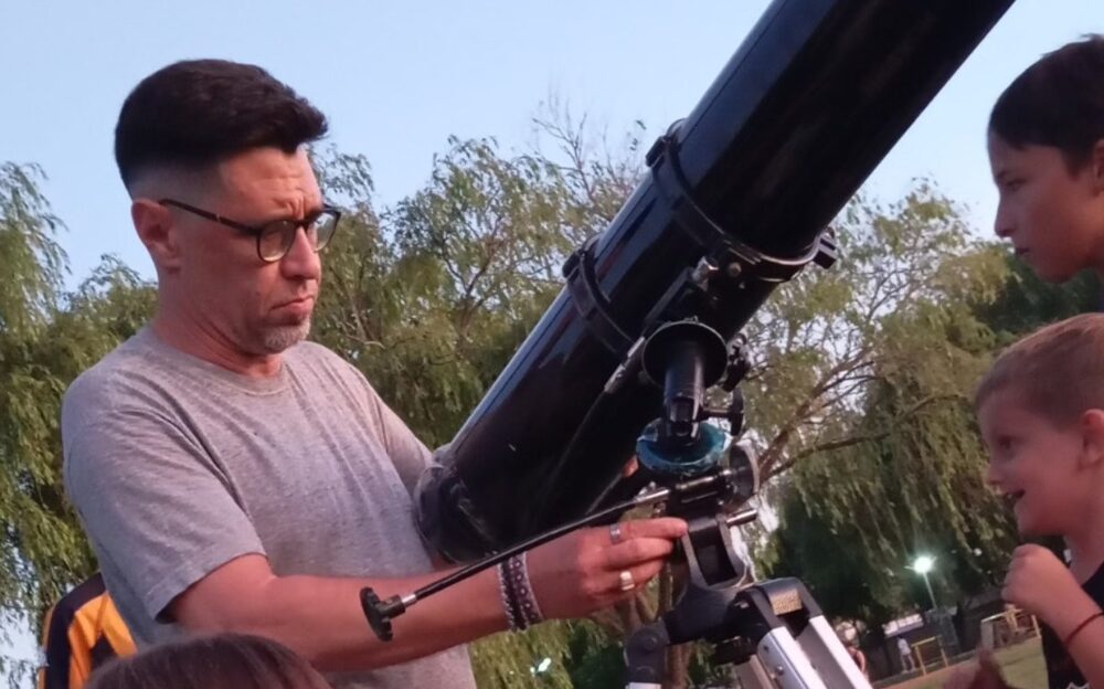 En el predio del ferrocarril, con telescopios y la guía de expertos, aprendieron sobre constelaciones y planetas. Una experiencia inolvidable para grandes y chicos.