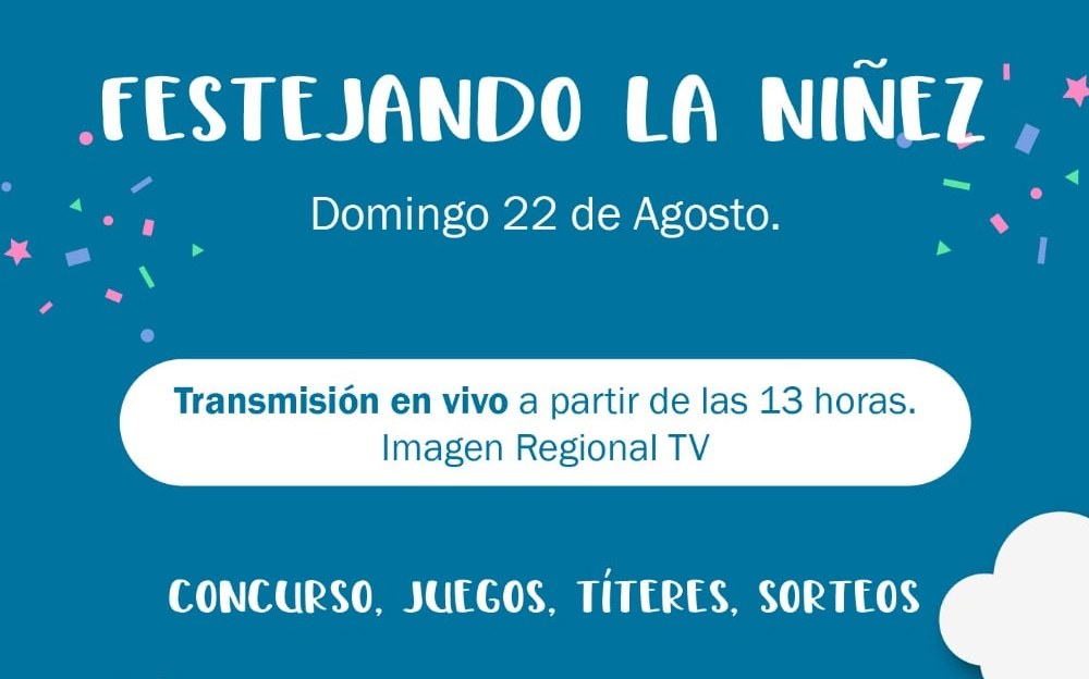 El domingo 22 de agosto por Imagen Regional TV, con la conducción de Cachimbo se viene una hermosa tarde para disfrutar en familia. Juegos, títeres, móvil en vivo, concursos y sorteos por grandes premios.