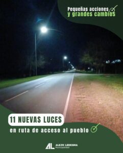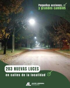 La Municipalidad de Alejo Ledesma informa la implementación de nuevas luminarias en la vía pública.