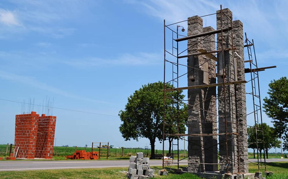 La Municipalidad de Alejo Ledesma construye un nuevo pórtico de ingreso a la localidad.