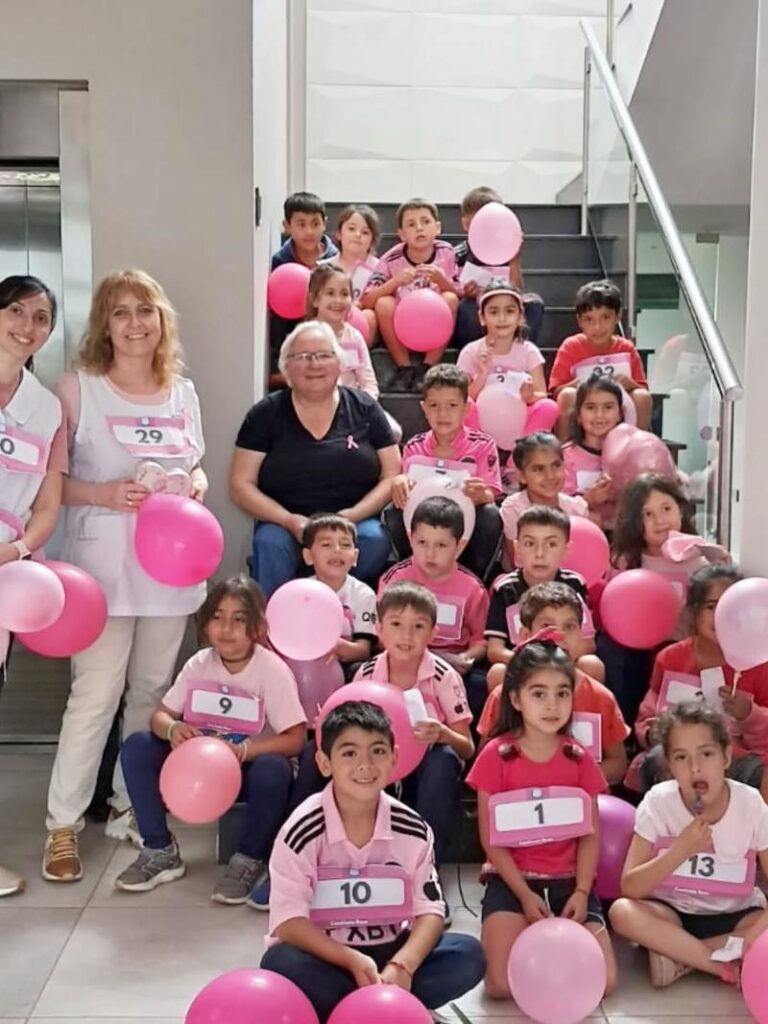 Alumnos de la Escuela Domingo F. Sarmiento se sumaron a la concientización sobre el cáncer de mama.