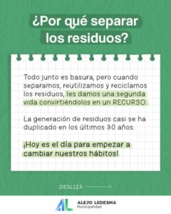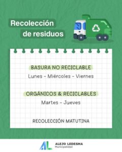 La Municipalidad de Alejo Ledesma invita a ala comunidad a sumarse al programa de reciclado.