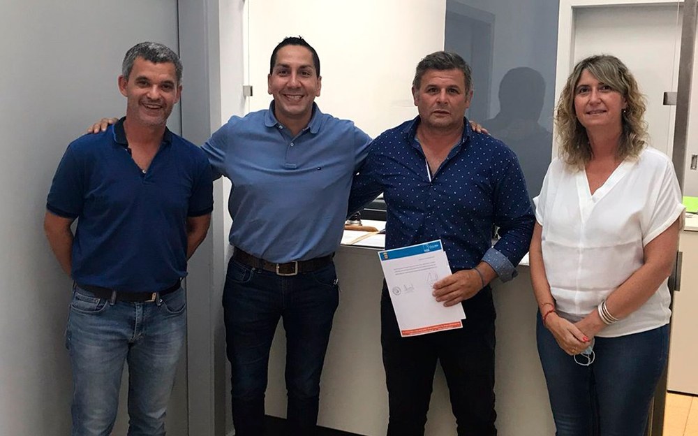 El Intendente Municipal Agustín González junto al Secretario de Gobierno David Zanin y la Secretaria de Hacienda Nerina Cicconofri hicieron entrega de aportes al presidente del Club Unión Marcelo Calvo.