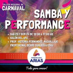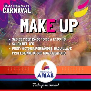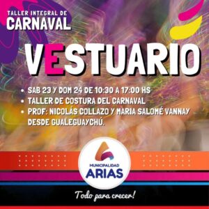 La Municipalidad de Arias invita a participar del Taller Integral de Carnaval que se desarrollará el próximo fin de semana.