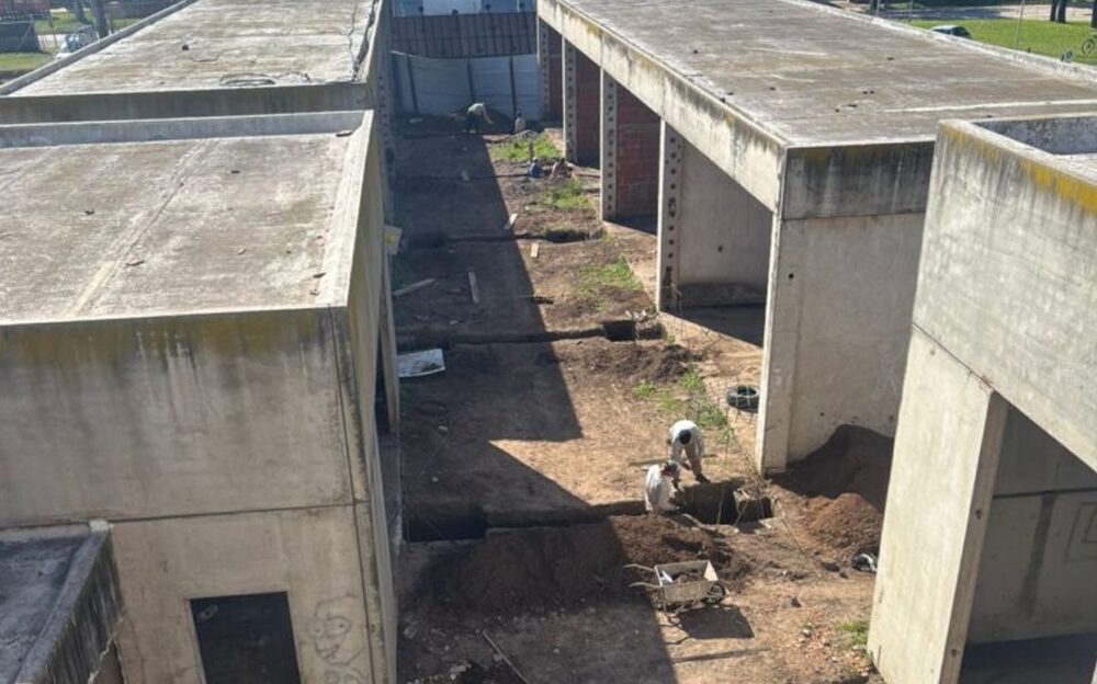 Continúan los trabajos en el edificio central, con el hormigonado de bases y vigas, y la instalación de desagües y elementos de seguridad.