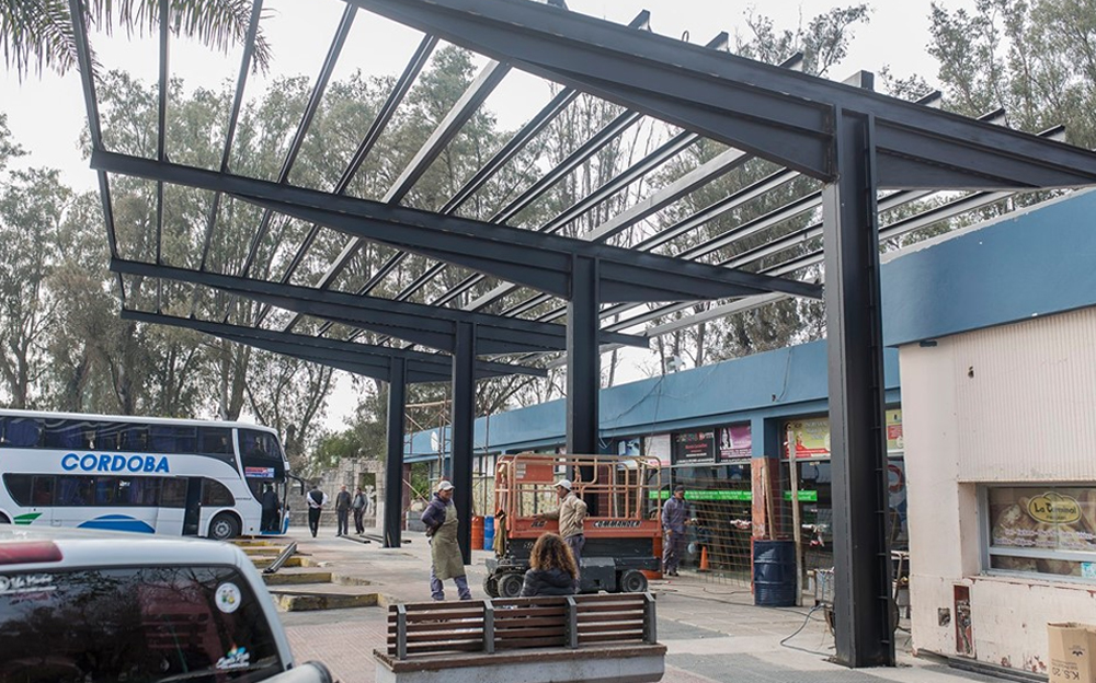 Prosigue el montaje de la estructura metálica que dará lugar al alero sobre las dársenas de la estación Terminal de Ómnibus “Manuel Belgrano”.