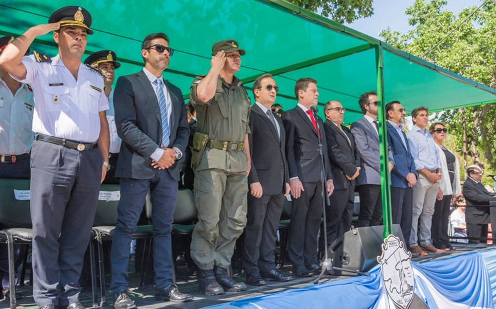 El Intendente, Dr. Carlos Briner encabezó el acto y posterior desfile con la participación especial de efectivos de la Fuerza Aérea Argentina-Área Material Las Higueras (Río Cuarto), Gendarmería Nacional-Escuadrón Seguridad Vial Villa María, Delegación Bell Ville de Policía Federal Argentina, Unidad Regional Departamental Unión de la Policía de la Provincia de Córdoba, Bomberos Voluntarios y Veteranos de Malvinas.