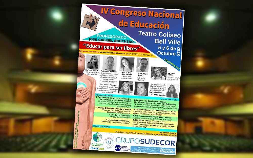 Se encuentran abiertas las inscripciones para el IV Congreso Nacional de Educación que organiza el Instituto del Profesorado Presbítero José Gabriel Brochero, a celebrarse los días 5 y 6 de octubre en el Teatro Coliseo de Bell Ville.