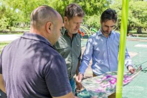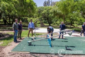 Luego de acondicionar el lugar, con la presencia del intendente Carlos Briner y de otros funcionarios municipales, comenzó la colocación de los juegos infantiles temáticos e inclusivos en la zona “El Hongo” de la Reserva Natural Francisco Tau.