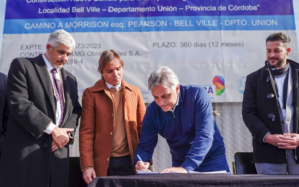 El gobernador Martín Llaryora visitó la localidad de Bell Ville, en el departamento Unión, donde encabezó la firma del contrato que da inicio a la construcción del nuevo edificio del Hospital Regional José A. Ceballos.