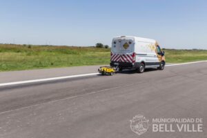 Invitado por el responsable de la ANAC Bell Ville (Administración Nacional de Aviación Civil), David Sagario, el intendente municipal participó de una prueba realizada por una empresa especializada, sobre la pista del aeródromo local, tras los trabajos de repavimentación realizados por la Provincia.