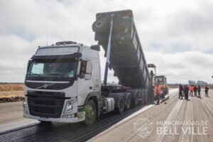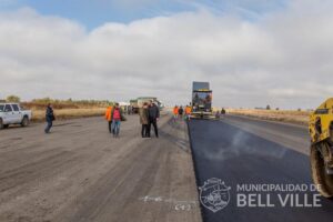 Con la supervisión de Vialidad Provincial, personal de la empresa contratada para la tarea está reasfaltando por estas horas, un tramo de la pista del aeródromo local ubicado en las instalaciones del Aero Club Bell Ville.