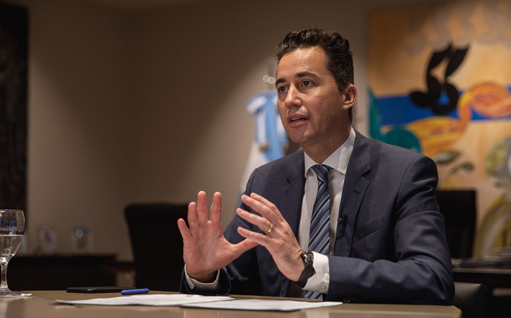 El vicegobernador Manuel Calvo, junto a otros integrantes de la Liga de Vicegobernadores, participó hoy de un encuentro virtual con el embajador argentino en España, Ricardo Alfonsín, con el objetivo de dar a conocer las fortalezas y potencialidades de los sectores productivos de cada provincia con posibilidad de exportación al país europeo.