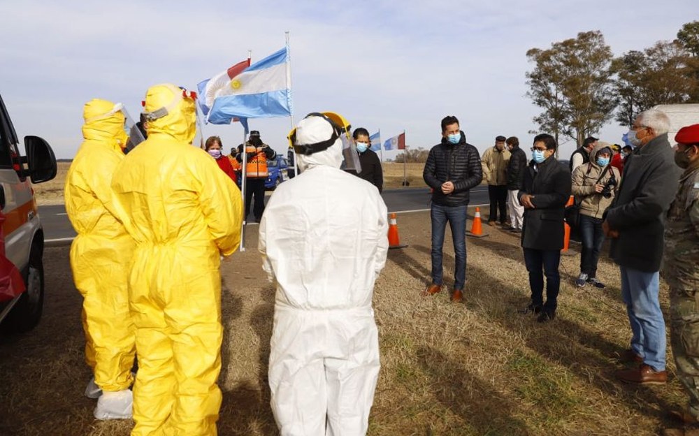 El vicegobernador Manuel Calvo, acompañado por el ministro de Salud Diego Cardozo, visitaron este viernes el puesto virológico dispuesto por la Provincia, en el cruce de las rutas 8 y 12, a la altura de la localidad de Arias.