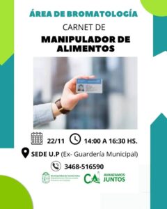 Para inscripciones: Oficina de Bromatología – 7:00 a 13:00 hs. o al Tel: 3468-402426/15516590