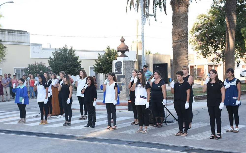 El renovado centro cívico fue el lugar elegido para la ceremonia y del mismo participaron las instituciones educativa de la localidad.