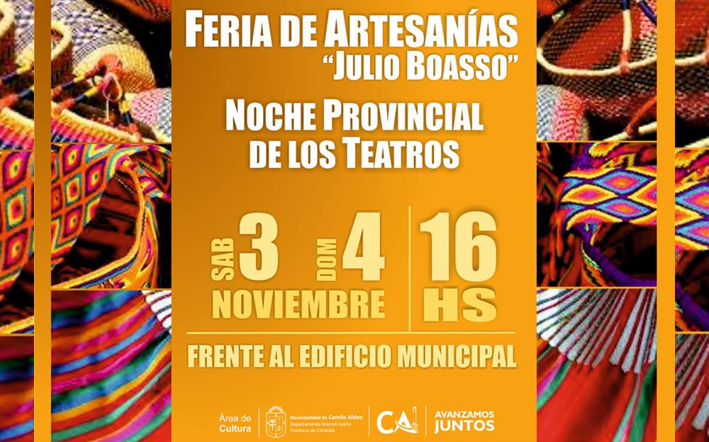 Se desarrollará en Camilo Aldao la tradicional Feria de artesanías “Julio Boasso” y la Noche Provincial de los Teatros. Dos eventos de repercusión provincial que invitan a todo el público de la región.