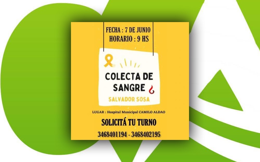 La Municipalidad de Camilo Aldao y Banco de Sangre de la Provincia Unidos por Salvador Sosa .