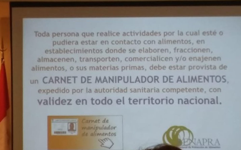 La Bromatóloga Valeria Sánchez, está participando del PROGRAMA DE FORMACIÓN DE CAPACITADORES CALIFICADOS EN MANIPULACIÓN SEGURA DE ALIMENTOS – 4ta COHORTE, en la ciudad de Córdoba. La misma se realiza para la puesta en marcha y posterior obtención del Carnet de Manipulador de Alimentos Nacional con duración de 3 años, de acuerdo a la modificación del Artículo Nº 21 del Código Alimentario Argentino. Dicho carnet se otorgará desde nuestro municipio con la realización de un curso de manipulación de alimentos de 7 horas con una instancia evaluativa..