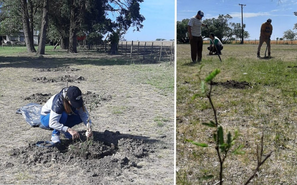 Durante la última semana del mes de octubre continuaron los trabajos de plantación de la cortina forestal dentro de la zona de resguardo ambiental en el establecimiento de los productores Cristián Perez y Agustín Zubizarreta, quedando constituida por 2 hileras de algarrobos provenientes del programa de integración con la comunidad.