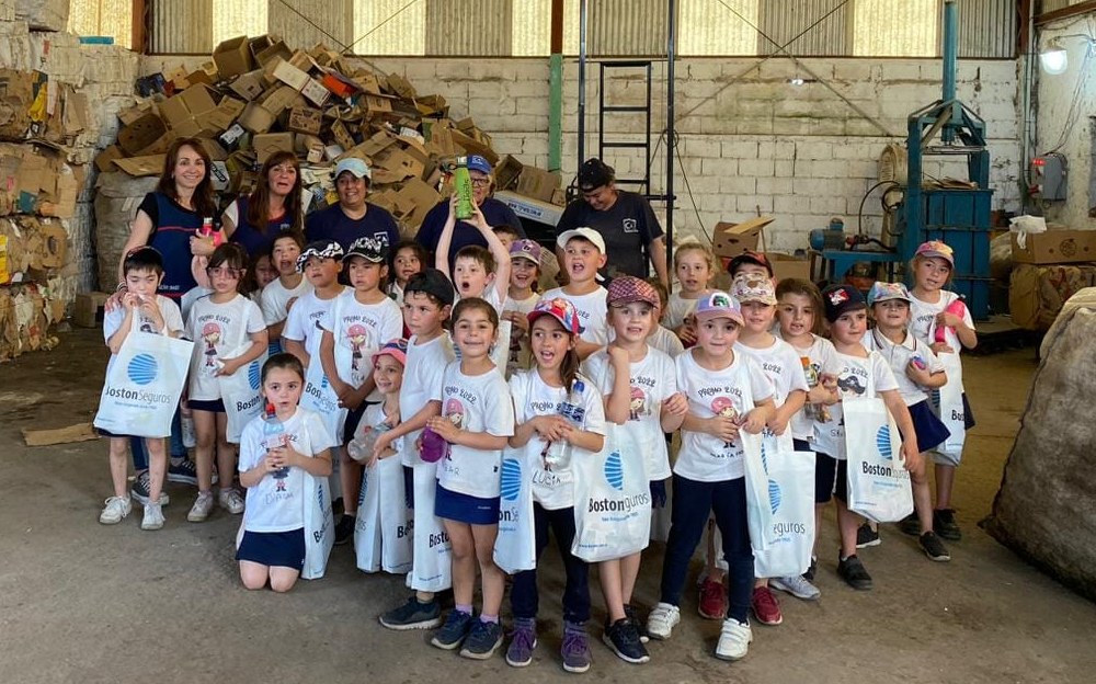 Niños y niñas de la salita de 5 años del Instituto Sagrado Corazón de Jesús visitaron la Planta de Reciclado y aprendiendo sobre su funcionamiento.
