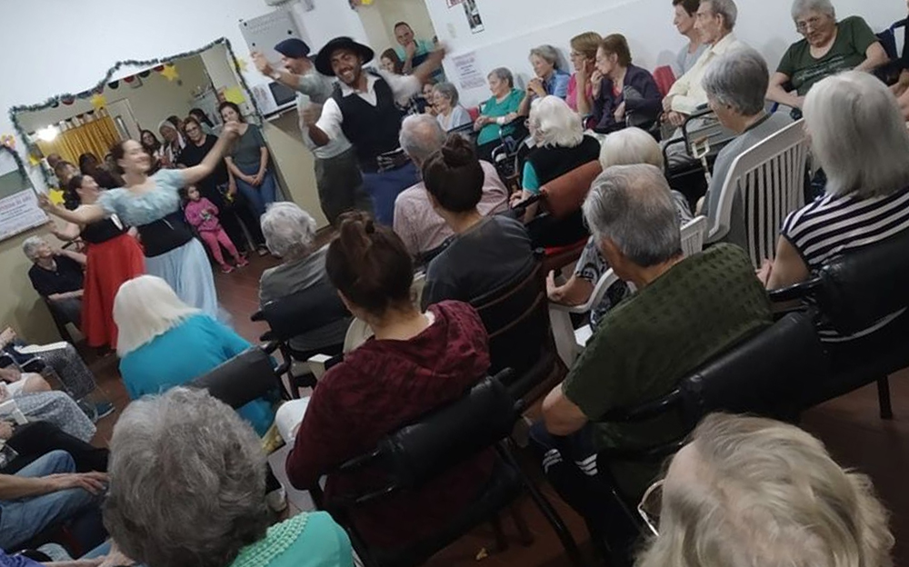 El ámbito en donde conviven los adultos mayores cuenta con el permanente apoyo de la comunidad. En estas fechas especiales, los abuelos y abuelas reciben el cariño de los artistas.