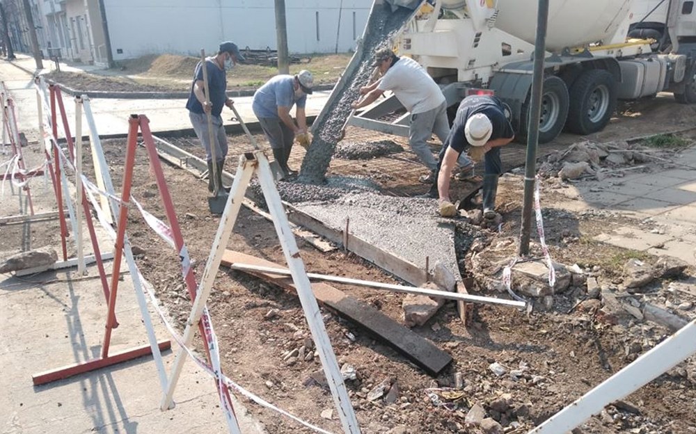 Obras Públicas de la Municipalidad de Camilo Aldao se encuentra realizando los trabajos de terminación con hormigón, en esquina Urquiza y José María Aldao.