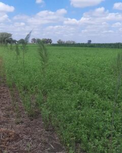 Al norte, en el corredor de la familia Cingolani, se armó una cortina de 4 hileras con un total de 130 ejemplares. En el campo de la familia Tonelli, en el límite oeste de la planta urbana, se confeccionó una cortina forestal con 43 algarrobos integrados al lote alfalfa. Por último , en el campo de la familia Casanova, se plantaron 77 casuarinas adquiridas por el productor, también integradas a una franja de pastura de alfalfa.