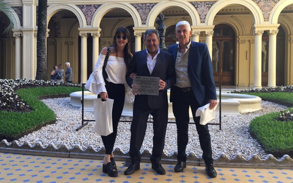 Carlos Carignano, Intendente de Camilo Aldao, junto al encargado de Obras Públicas, Mario Bacelli y la Arquitecta Camila Bacelli fueron los encargados de recibir el reconocimiento nacional.