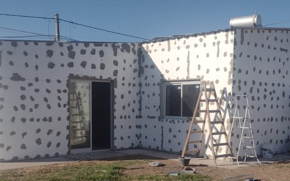 El área de Obras Públicas de la Municipalidad de Camilo Aldao avanza en la construcción de las Viviendas Sustentables.