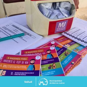 Campaña de prevención en Marcos Juárez noticias 20 diciembre, 2023Triple Media Durante la jornada de ayer martes 19, la municipalidad de Marcos JUárez junto al equipo de salud realizó intervenciones comunitarias con: Asesoramiento. Entrega de preservativos. Testeo Rápido de ITS: VIH, Sífilis y Hepatitis B. ¡ELEGÍ SABER!