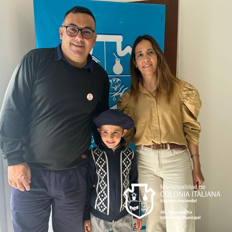 El pequeño Stefano Davico Borsini estuvo hoy en la Municipalidad de Colonia Italiana compartiendo un desayuno con parte del equipo municipal.