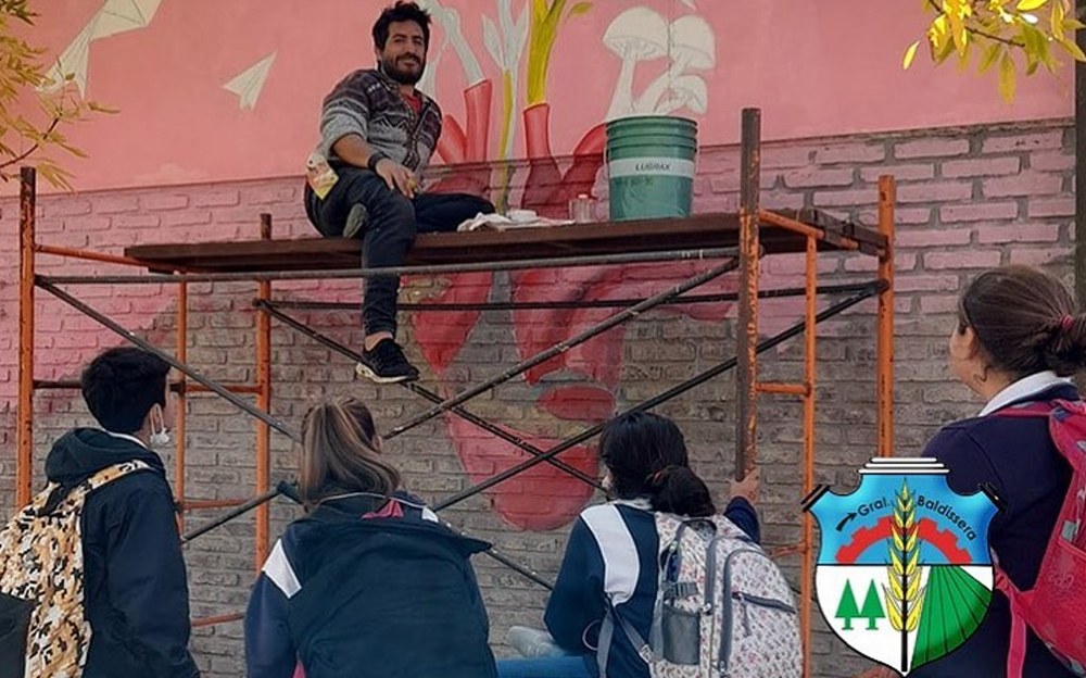 El artista es Rodrigo Oroná, diseñador gráfico, muralista y antropólogo, comenzó con el proyecto Colores Nuestros de la Secretaría de Cultura de General Baldissera.