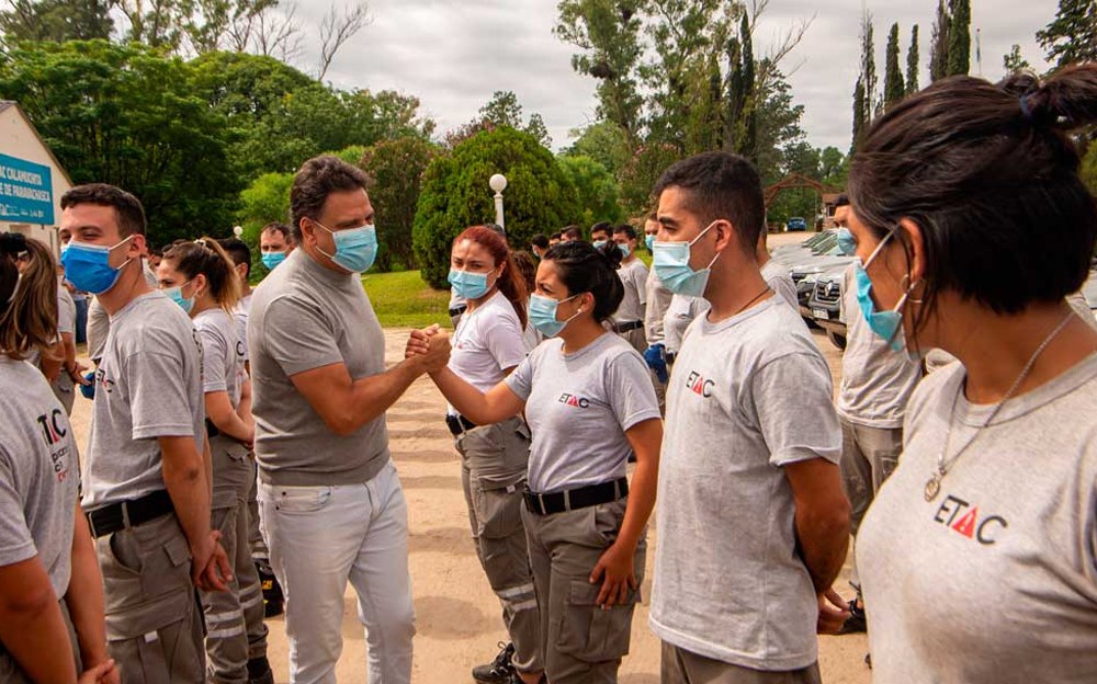 Este viernes en la base del ETAC «Paravachasca-Valle de Calamuchita», el ministro de Seguridad, Alfonso Mosquera, recibió a los 86 efectivos que retornaron de la provincia de Corrientes tras largas jornadas de combate contra el fuego.