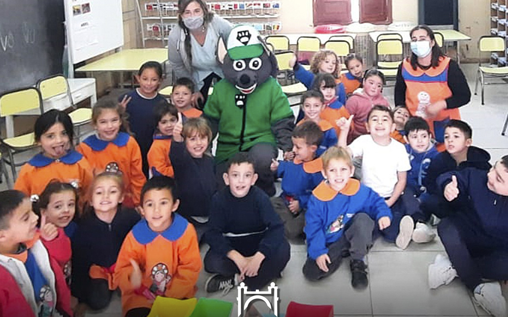 Rocky, junto a integrantes del equipo de la Dirección de Bromatología visitó la Salita de 5 del Instituto Juan XXIII.