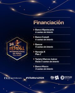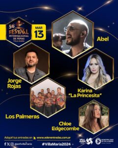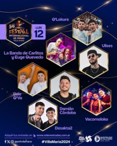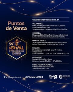 Conocé la grilla del 56° Festival Internacional de Peñas Villa Maria 2024 Córdoba 8 enero, 2024Triple Media Desde mañana martes 9 de enero podrás adquirir tus entradas anticipadas, en los diferentes puntos de venta físicos y online. La venta de los tickets para la noche del sábado 10 de febrero, saldrán a la venta en los próximos días.