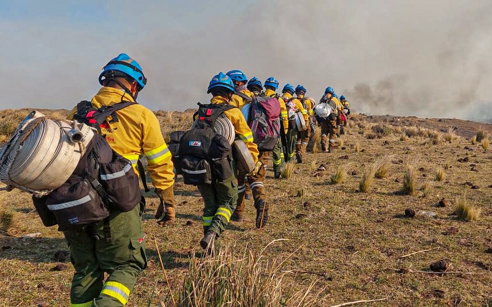 Además, indicó que se encuentra trabajando en el sector personal del ETAC especialista en uso de bombas. Este fue helitransportado, por un helicóptero de Nación, hacia la línea de fuego a inmediaciones del río de Los Espinillos, a efectos de impedir que el incendio cruce hacia el otro lado.