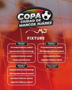 La Secretaría de Cultura y Deporte de la Municipalidad de Marcos Juárez informa que se llevará a cabo la Copa Ciudad de Marcos Juárez, un emocionante torneo que reunirá a importantes equipos de la región en el Predio Rodolfo Depetri del Club San Martín.