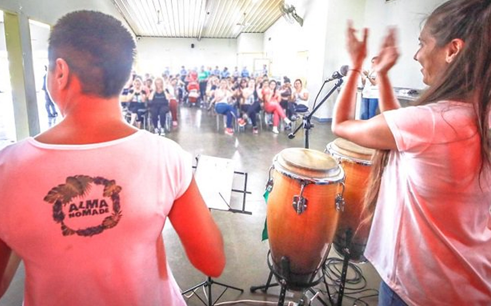La banda cordobesa Alma Nómade se presentó en el Establecimiento Penitenciario Reverendo Francisco Lucchese, en el marco del ciclo de actividades culturales en contextos de encierro. Participaron internas que asisten a los talleres musicales.