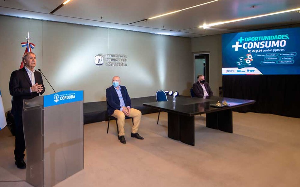 El Gobernador, Juan Schiaretti, junto al ministro de Industria, Comercio y Minería, Eduardo Accastello, y el presidente de Bancor, Daniel Tillard, presentó los planes de 24, 20 y 12 cuotas fijas con Tarjeta CORDOBESA.