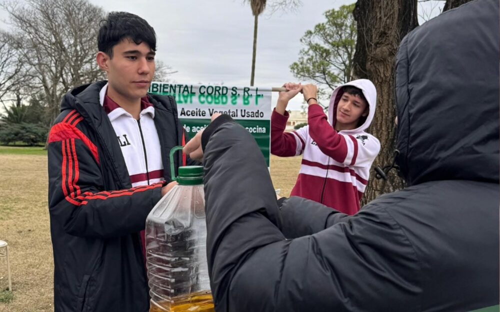 Vecinos y vecinas se acercaron con su aceite usado en botellas plásticas y se sumaron así a esta acción que contribuye al cuidado del planeta.