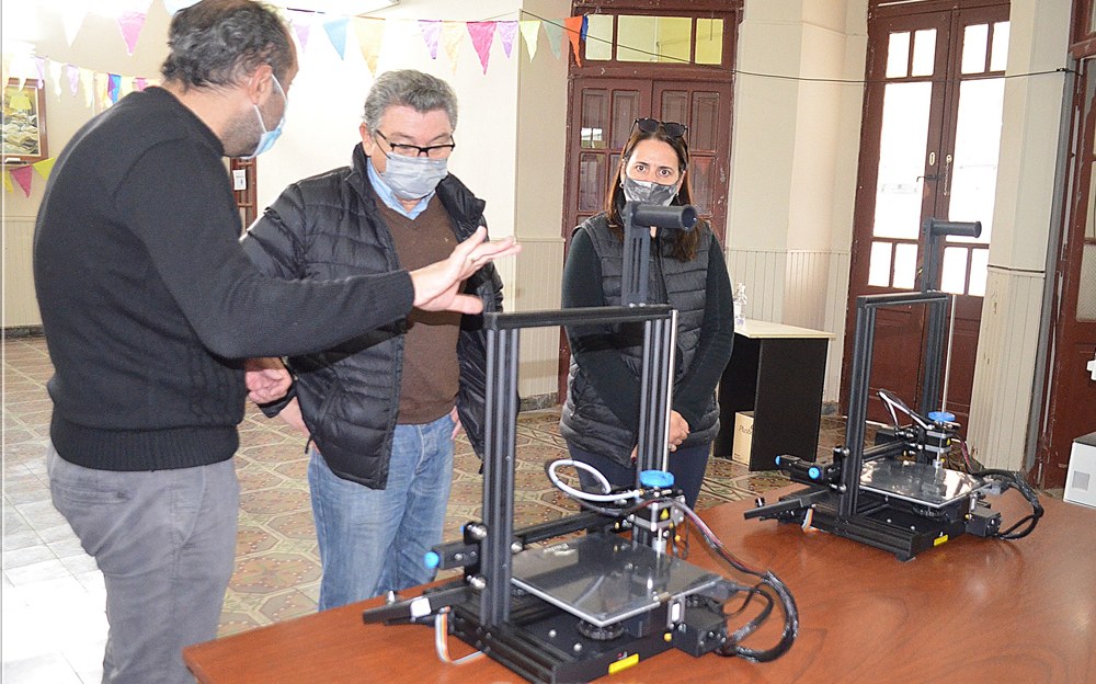 En su momento el municipio les entregó dos impresoras, que debieron ser calibradas y hoy los estudiantes ya están realizando sus primeras piezas.