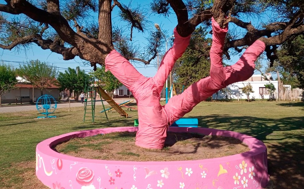 El Refugio Honrar la VIDA vistió de rosa al ceibo característico de ese lugar y artistas plásticos le pusieron color al cantero.