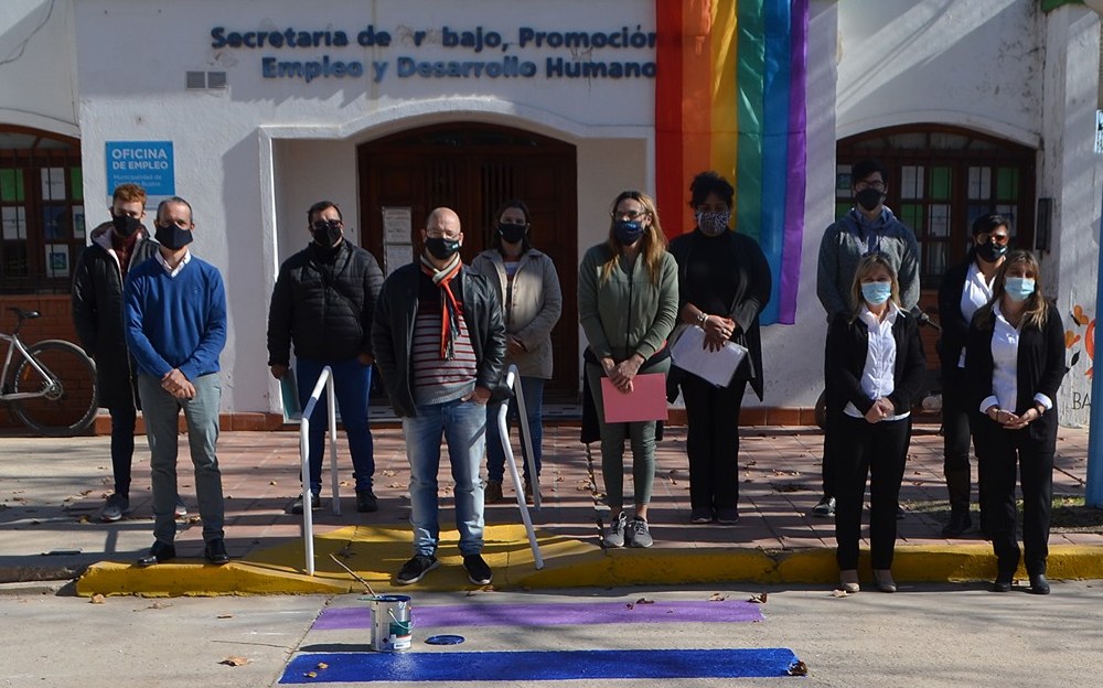 Acompañaron el momento el Secretario de Cultura y Deporte, Arnaldo Vannay, la Secretaria de Desarrollo Humano, Lic. Carina Bianconi y la Concejal de la minoría Claudia Zozula, quienes entregaron a miembros del colectivo LGTBYQ+ la Ordenanza que instituye el recordatorio local.