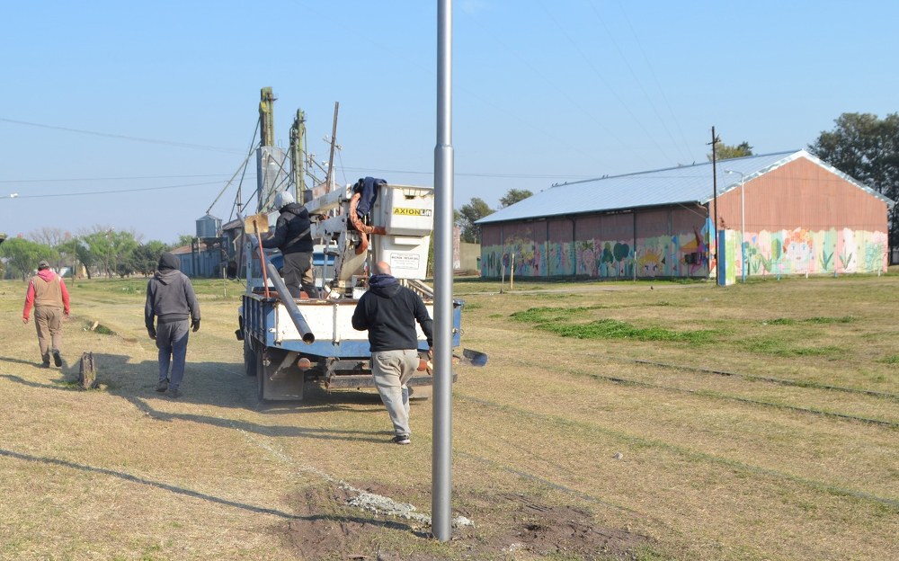 La Municipalidad de Corral de Bustos Ifflinger inició la colocación de 44 nuevas columnas de alumbrado público led en el predio del ferrocarril.