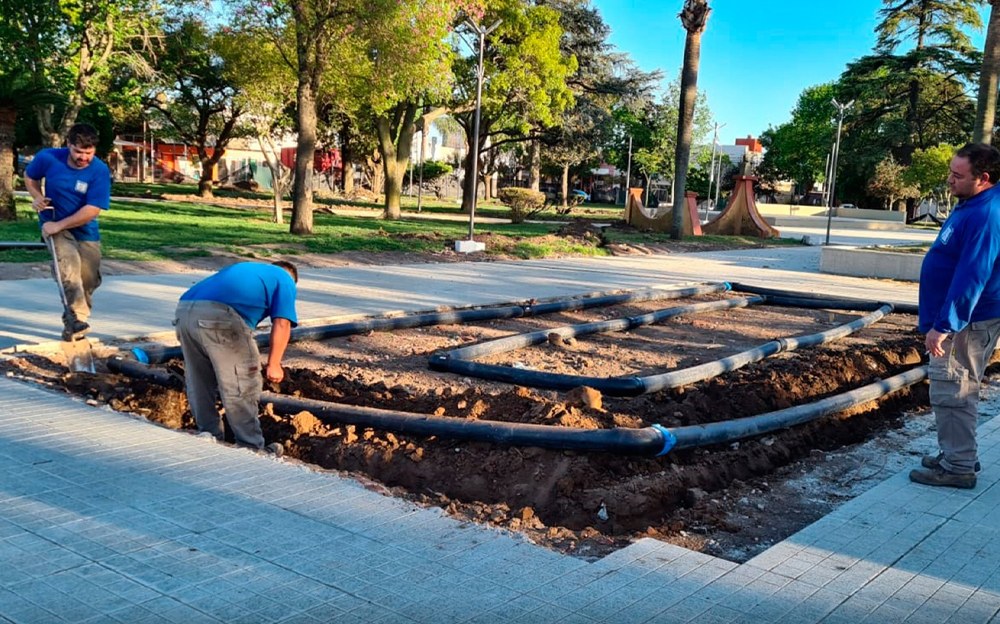 Avanzan las tareas de remodelación en Plaza 25 de Mayo de la localidad.