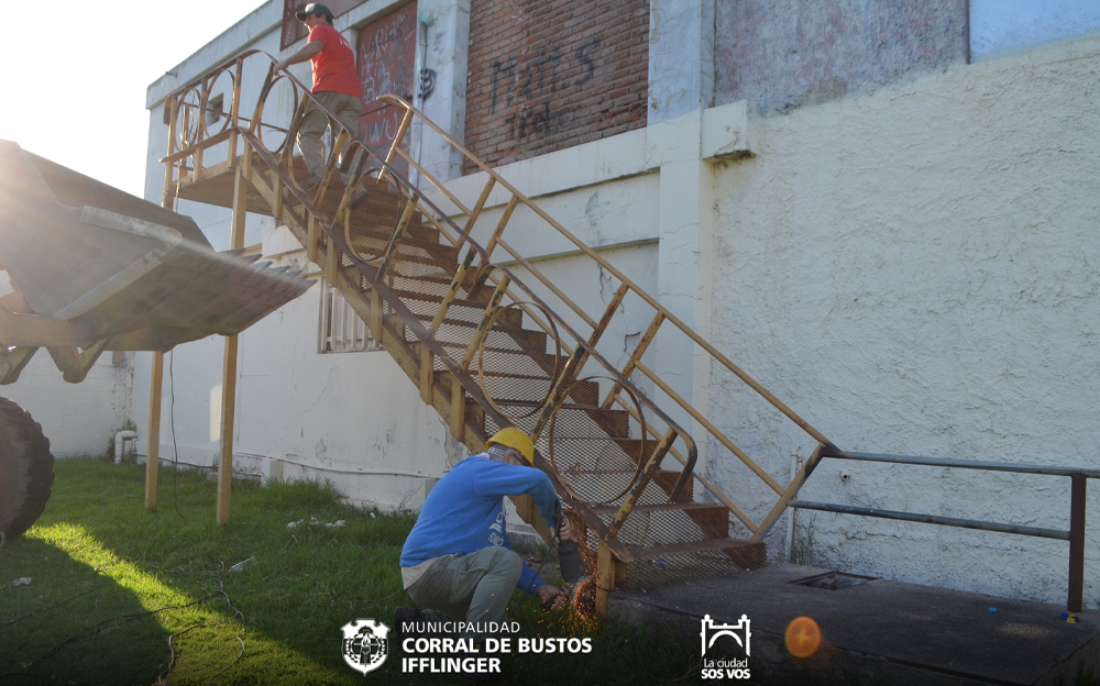 Con el acuerdo del propietario de Estación Disco, personal municipal procedió a retirar una vieja escalera de emergencia instalada en la parte trasera del inmueble en desuso.