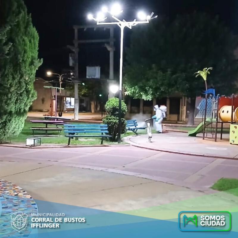 Durante la noche y primeras horas de este viernes 7 de marzo, personal municipal realizó intervenciones y pulverizaciones en todos los espacios verdes públicos de la ciudad.