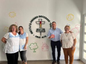 El intendente municipal Agustín González junto a la Secretaria de Cultura, Educación y Deporte Prof. Flavia Pesci participaron de la celebración de los 50 años del Jardín de Infantes San Luis junto a docentes y alumnos de la institución.